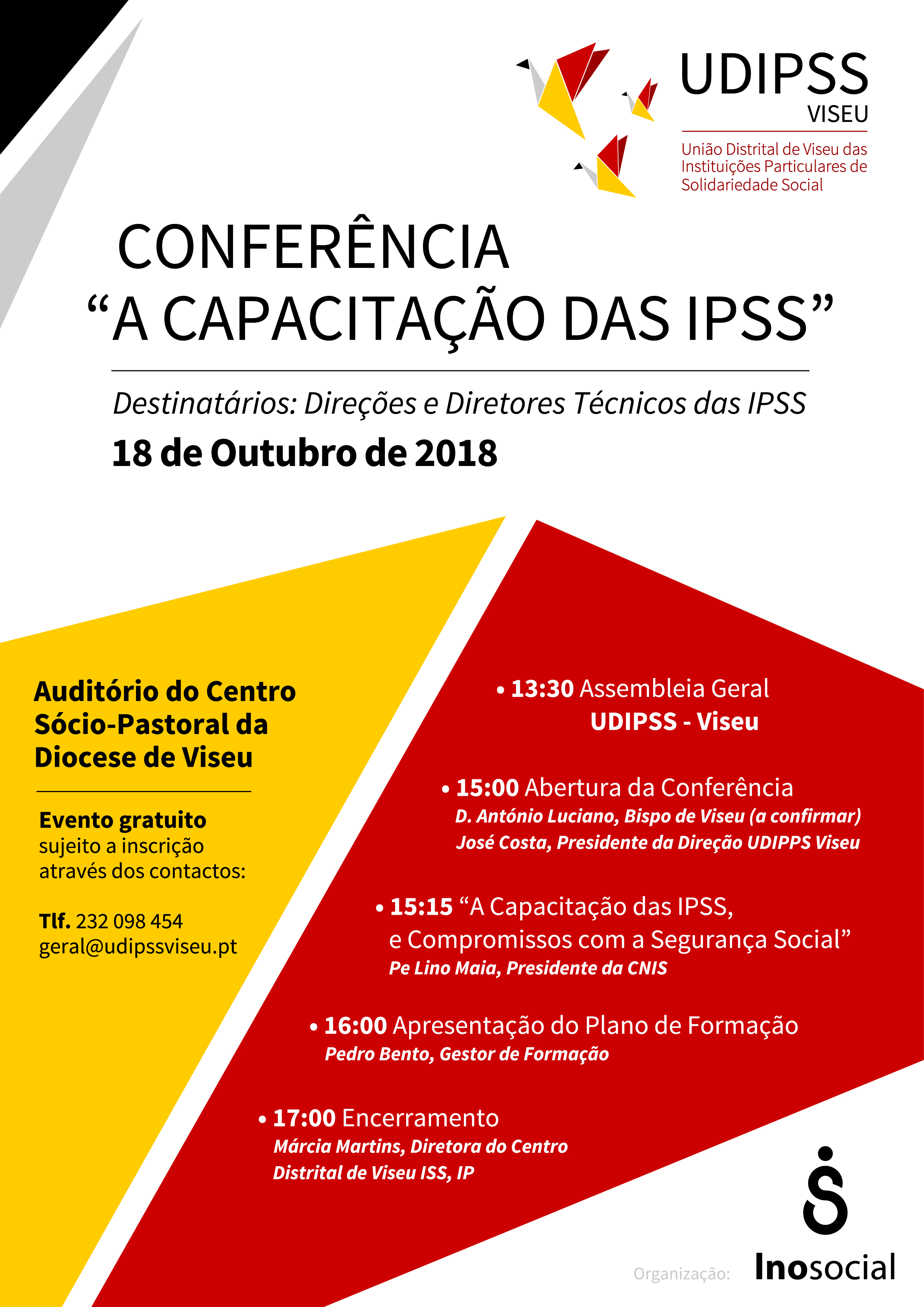 Conferência “A Capacitação das IPSS” A UDIPSS-Viseu leva a efeito no dia 18 de outubro, no auditório do Centro Sócio-Pastoral da Diocese de Viseu, a Conferencia “A Capacitação das IPSS”